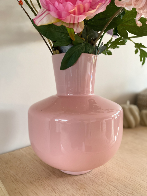Artikelnummer: 1166253Deze elegante glazen vaas in zacht roze is een verfijnde toevoeging aan ieder interieur. De subtiele kleur zorgt voor een warme, frisse uitstraling en laat bloemen – zowel zijden als verse – prachtig tot hun recht komen.