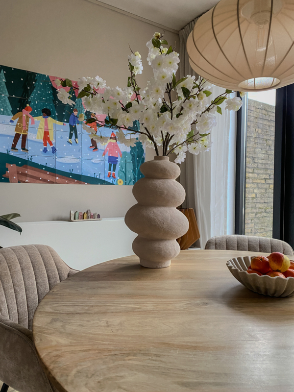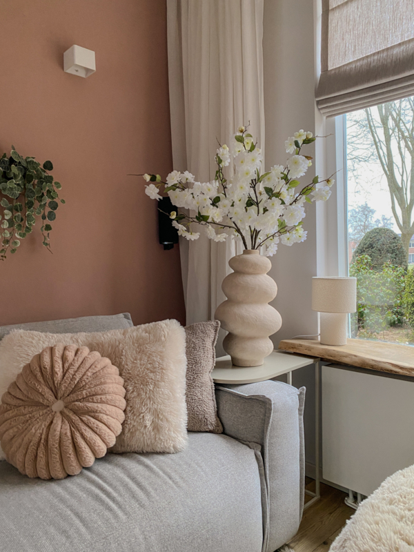 Witte bloesem staat symbool voor nieuwe beginnen, puurheid en harmonie. Het straalt frisheid en zachtheid uit en geeft elke ruimte een lichte, uitnodigende sfeer. Perfect voor de woonkamer, hal, slaapkamer of als tijdloos accent op tafel.