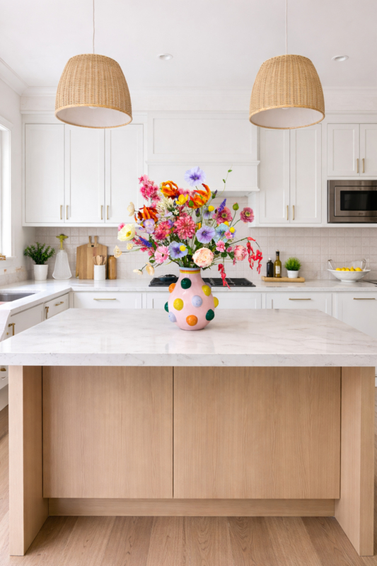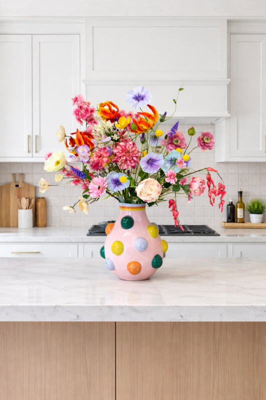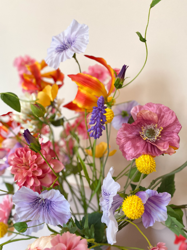 Het boeket bestaat uit 17 bloemstelen met lengtes variërend van 51 tot 105 cm. Door deze verschillende hoogtes creëer je eenvoudig een speels en natuurlijk effect in je vaas. De stelen zijn flexibel en naar wens te vormen, zodat je het boeket perfect kunt stylen.