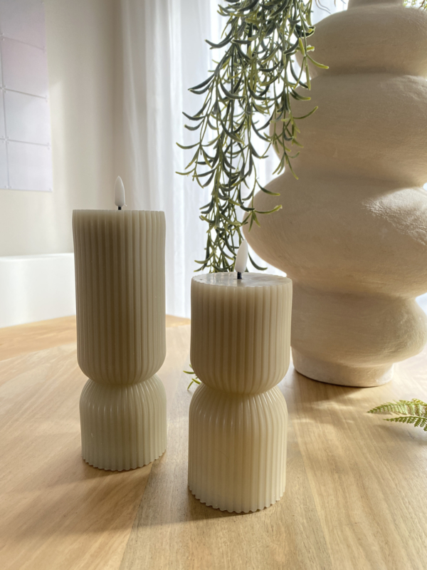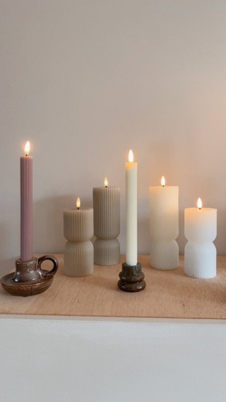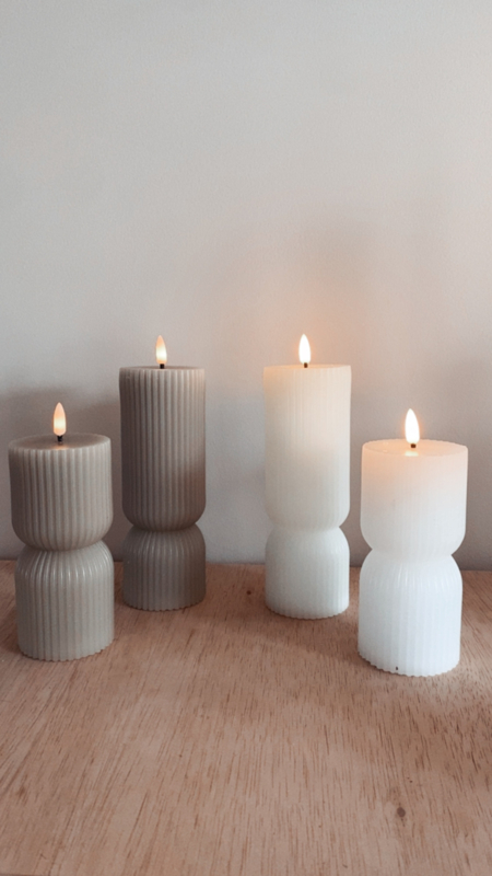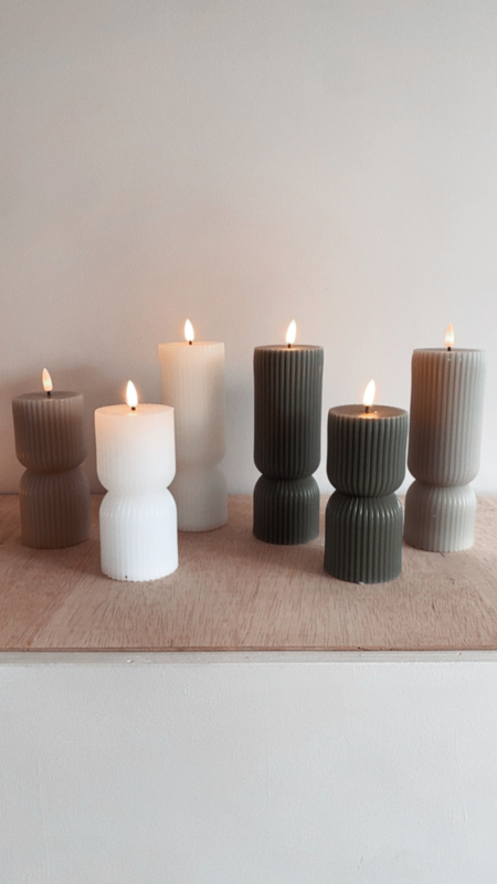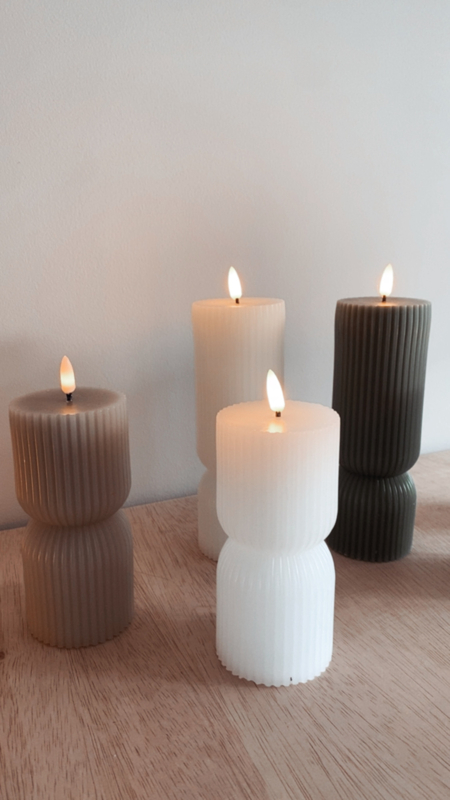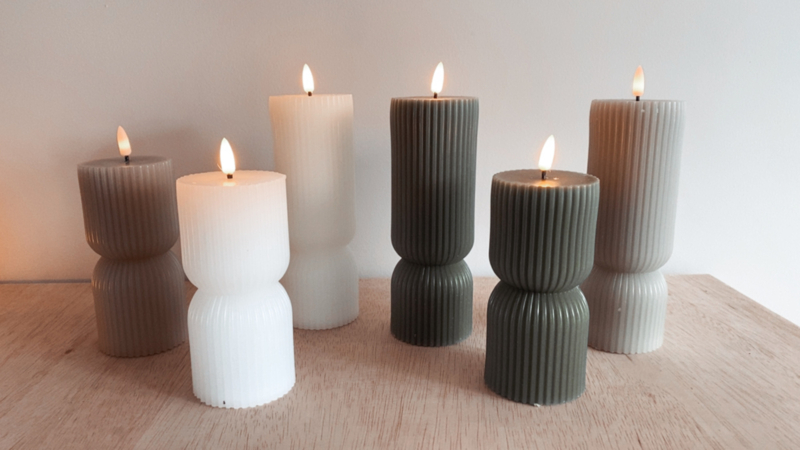 Led stompkaars ribbel | 3 kleuren | SKleur: verkrijgbaar in 3 kleuren zacht groen, grijs en wit